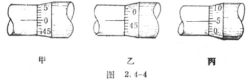 校準(zhǔn)好的千分尺,當(dāng)測(cè)微螺桿與測(cè)砧接觸后,可動(dòng)刻度上的零線與固定刻度上的水平橫線應(yīng)該是對(duì)齊的,如圖2.4-4甲所示。如果沒(méi)有對(duì)齊,測(cè)量時(shí)就會(huì)產(chǎn)生系統(tǒng)誤差──零誤差。如無(wú)法消除零誤差,則應(yīng)考慮它們對(duì)讀數(shù)的影響。若可動(dòng)刻度的零線在水平橫線上方,且第x條刻度線與橫線對(duì)齊,即說(shuō)明測(cè)量時(shí)的讀數(shù)要比真實(shí)值小x.100毫米,這種零誤差叫做負(fù)零誤差,如圖2.4-4乙所示,它的零誤差為-0.03毫米;若可動(dòng)刻度的零線在水平橫線的下方,且第y條刻度線與橫線對(duì)齊,則說(shuō)明測(cè)量時(shí)的讀數(shù)要比真實(shí)值大y.100毫米,這種零誤差叫正零誤差,如圖2.4-4丙所示,它的零誤差為+0.05毫米。