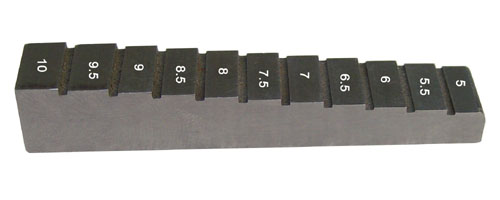 The accuracy of electronic digital caliper depends on the accurancy of mechanical parts , electronic module and stator strip sensor. Manufacturing electronic module needs high technology and special precision equipment. There are several manufacturers of electronic modules in China.But only one manufacturer can make electroni module with high accuracy. All low-end electronic digital calipers use electronic modules with low accuracy. How can we know the accuracy of electronic module ? Just check digital caliper with a set of 9-piece gauge blocks with a step of 0.5mm, such as 1, 1.5, 2, 2.5, 3, 3.5, 4, 4.5, 5mm or with a module master (from 5mm to 10mm, the correct way is to set zero while the measuring faces of the digital caliper's lower jaws contact the Module Master at 5mm and then begin to measure in order to avoid the errors of the stator, the measured value should be 0, 0.5, 1, 1.5, 2, 2.5, 3, 3.5, 4, 4.5, 5mm which corresponds to 5, 5.5, 6, 6.5, 7, 7.5, 8, 8.5, 9, 9.5, 10mm of the Module Master), you can easily find out the accuracy of the module. If the accuracy is=0.01mm, it shows the module's accuracy is high. If the accuracy is =0.02mm, it shows the module's accuracy is low. Anyi's specially designed Module Master can check modules fast and easily(see the image below).