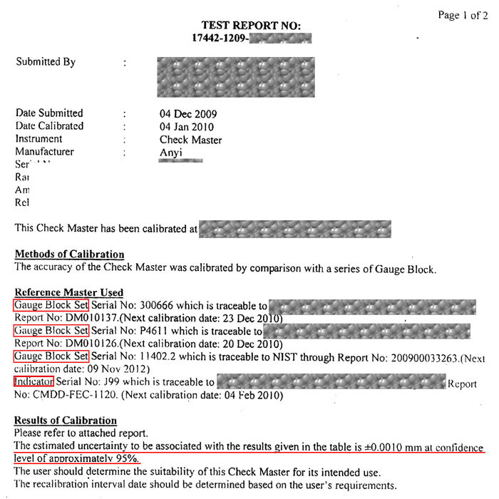 該客戶購買安一公司一臺600mm步距規(guī),收到貨后送當?shù)匾粰z測機構檢測后得到該份報告。該份報告其關鍵部分以紅線圈出。