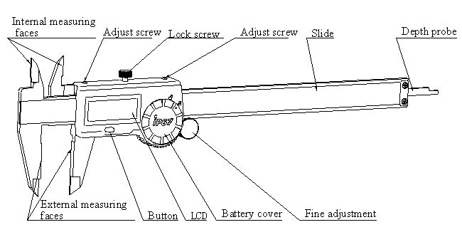 • Because the digital caliper adopts absolute encoding measurement system, the clearance and position between the reading head and the absolute encoder slide are strict and precise. Therefore do not dismantle any part of it in order to avoid the reading head's failure of reading the data on the absolute encoder slide.
